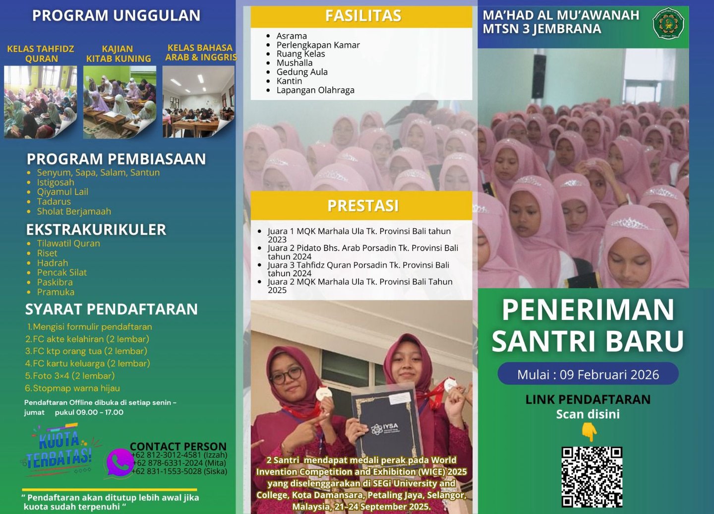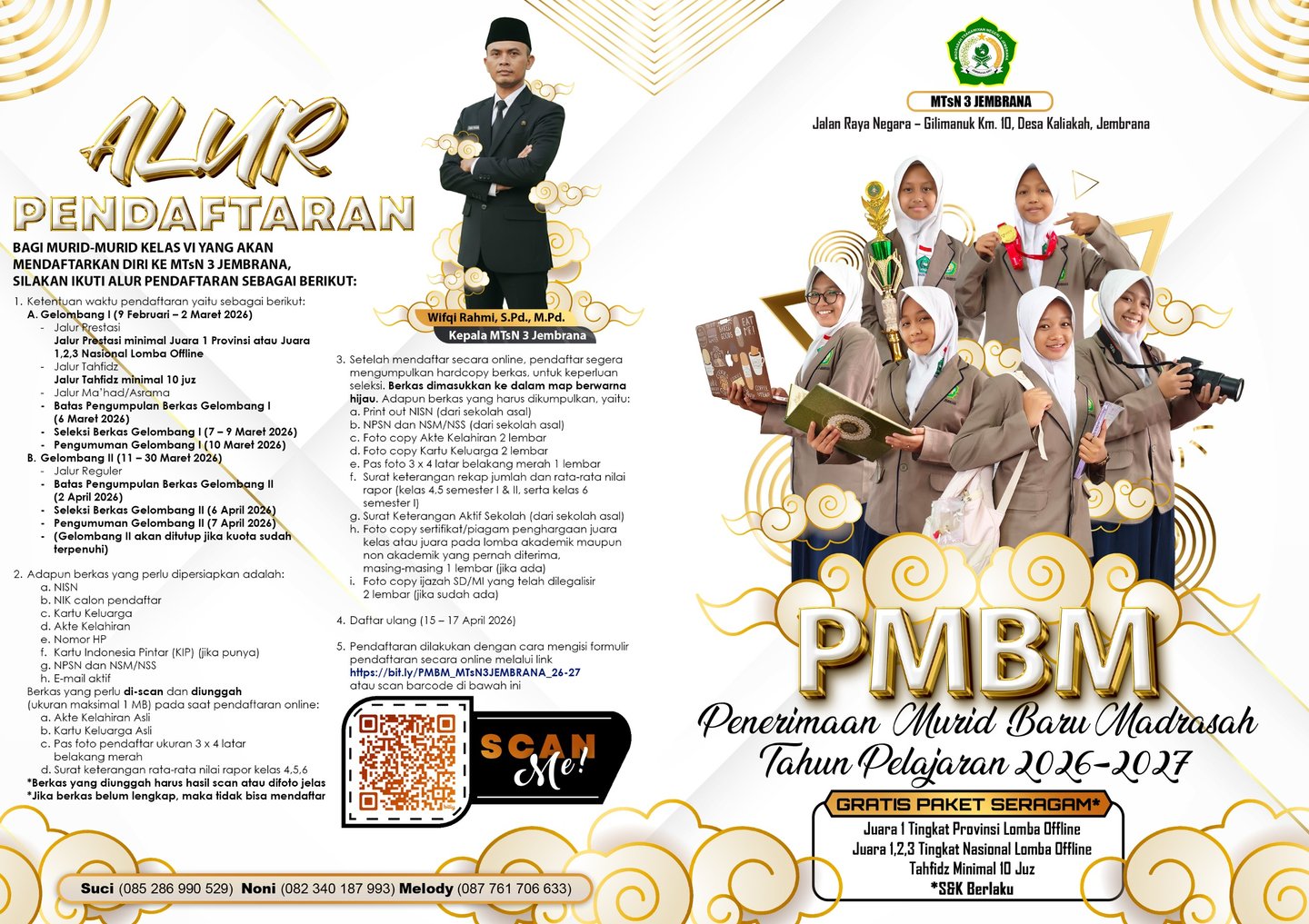 BAGI MURID-MURID KELAS VI YANG AKAN MENDAFTARKAN DIRI KE MTsN 3 JEMBRANA, SILAKAN IKUTI ALUR PENDAFTARAN SEBAGAI BERIKUT: